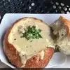 The Chowder Hut is always our first stop in San Francisco. We split the sour dough bun filled with hot clam chowder. This is so good (hot and tasty) and a tradition for us to begin our visit to this great city. The service is walk up or a full service waiter for you. We just walk up order and sit outside enjoying our meal in the cool Bay weather. This is also a great spot for people watching.