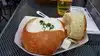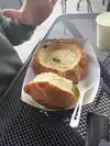 This place was recommended to us by a couple of friends, so we had to visit. The draw (for me) was the clam chowder served in a hollowed out loaf of sourdough bread. It was only later that I realised that practically every restaurant in Fisherman's Wharf serves chowder in exactly the same way. Doh! So, was it exceptional? Not really. It wasn't what I was expecting. The location is good, you can sit outside, sheltered by glass panels, and watch the world go by. You order your food from a serving window - the guy we spoke to seemed to have difficulty understanding our British accents and asked us to point to what we wanted from the menu. After a short while a waiter brings your food over. The chowder was fine, but it wasn't even the second best I've had this holiday. It was just - okay. My wife ordered a hot dog and again it was fine, with a nice portion of fries and onion rings. Prices were pretty cheap. Overall, not bad, but there are probably better places for chowder within easy walking distance.