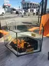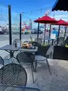 Enjoyed a fish and chips and a burger with a great view of the wharf and entertainment by a Street Vendor nearby. Nice fire pits with chairs to relax by. We stopped later and had a drink at the bar outside with heater above. It was wonderful.