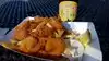 As soon as we returned from a boat tour we came across many very nice fish restaurants, but this one struck us for something that was perhaps silly: it had the dishes on the menu displayed so you could see what you were eating. Having seen that they all served more or less the same things in the surrounding area, we decided to try it and we ate very well! My fisch and chips were excellent, it wasn't greasy and I digested it very well! My husband got a crab sandwich and loved it! Fast, simple service, price in line with the place! I would go back for the quality of the fried fish.