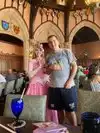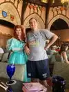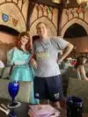 This has been a dream of mine since I was little, I am now 42. I checked in for our 3:55 reservation and immediately was told our table was ready. We walked inside and there was Cinderella waiting to greet us. We got our picture with her and chatted a bit. I loved that we didn't feel rushed at all. Then we walked up the staircase about two floors to the restaurant. The hostess was waiting for us and brought us immediately to our table. We got lucky to have a table by the window. Our server, Casey, immediately came over with water and asked if we wanted anything else to drink. She explained the menu and then left to give us time. She came back a few moments later with more water and we ordered. She was so nice and friendly we really enjoyed her. We ordered the beef and the chicken dishes they were both so amazing. The chicken was so tender I wish I could have had more. And the beef was cooked perfectly. Towards the end of the meal, twinkle lights flickered and there was a message played that it was time to make a wish upon our star. Everyone was given a wishing start when seated. The restaurant was so nice inside, it reminded me of almost being in Germany. Being upstairs in the castle was a dream come true. We also got a sword and a wand on exiting the restaurant. I am so happy I got to experience this place.