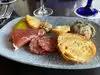 This was our second visit, but first time having lunch there. The atmosphere is very cool. You're in the castle! The charcuterie appetizer was not so good, but the entree and dessert made up for it! I had the braised chicken pesto pasta and the chocolate mousse dessert and OMG-- so good! The others in my group who got beef tenderloin loved theirs as well! The prices are a lot, but I think it was worth it. We left full, but the portion sizes were all just right. Our server (I think named Ken) was wonderful and really funny.