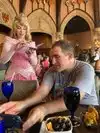 Managed to get this booked on our arrival day. We could not get in to be our guest so we chose this. We were disappointed overall. I am not sure what all of the hype was about there are castle decorations, but it did not feel special. Be our guest looks and feels like you are dining in the beasts castle. he walks around from time to time. The atmosphere makes it worth it. Royal table felt more like a regular restaurant with some decorations. Sit and eat. Look stained glass, flags hanging down. The server was very good, and really saved there meal. the wine flight was enjoyable. It’s a Prix fixe menu. 3 courses. the muscles tasted good but had tons of grit. The charcuterie was small and average. the pork main course was very good. The vegetables were too raw and didn’t taste like much. The dessert were good. I guess sometimes Cinderella is there. She wasn’t there when we went in to left so we never got to see her. There are many other placed on property we will pick over this next trip