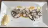 Hit the jack pot! We sat in the bar at a table for happy hour at 6pm. The bartender and hostess on Monday night were phenomenal. This is Italian tapas if there is such a thing. We started with a dozen local raw oysters with fresh grated horseradish and mignonette sauce. Divine at $22 for 1 dozen. We ordered 2 polpo (Spanish grilled octopus pieces) with fava beans and a purée. A good 4 bites. We ordered 1 grilled calamari which was great size to share 4 pieces each. Too die for with a spicy tomato emulsion! The star. I did like the carpaccio which is a huge portion big enough to share amongst 4 people. I had a great dry prosecco for $9 and my husband had a really good happy hour $5.50 Italian red. We capped it with 2 scoops each gelato (pistachio, chocolate, salted caramel) and coffee. Total bill with tip $130. Memorable and now a new weekly to do!