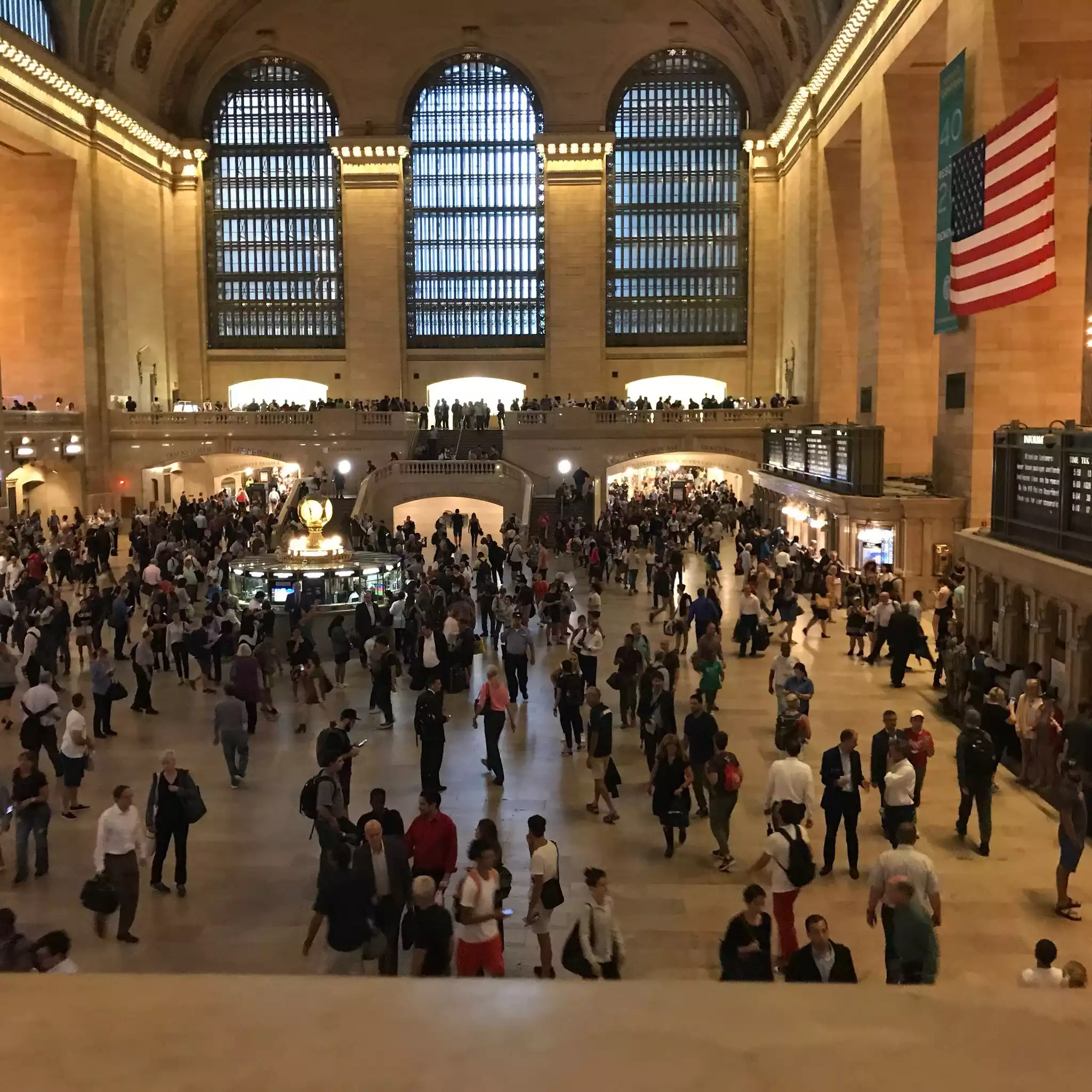Great place to enjoy a glass of decent wine and watch the world go by. Whenever I can, I stop here for either a glass of freshly squeezed juice or a glass of wine when going on to meet a friend or rushing back to catch a train. It's a great place to sometimes just stop and watch the world rush around you. You have the perfect view looking into the central area to keep an eye on your train schedule, watch the world go by or simply enjoy the organised manicness of NY's main station. A definite a visit whether as a tourist or coming into NY.
