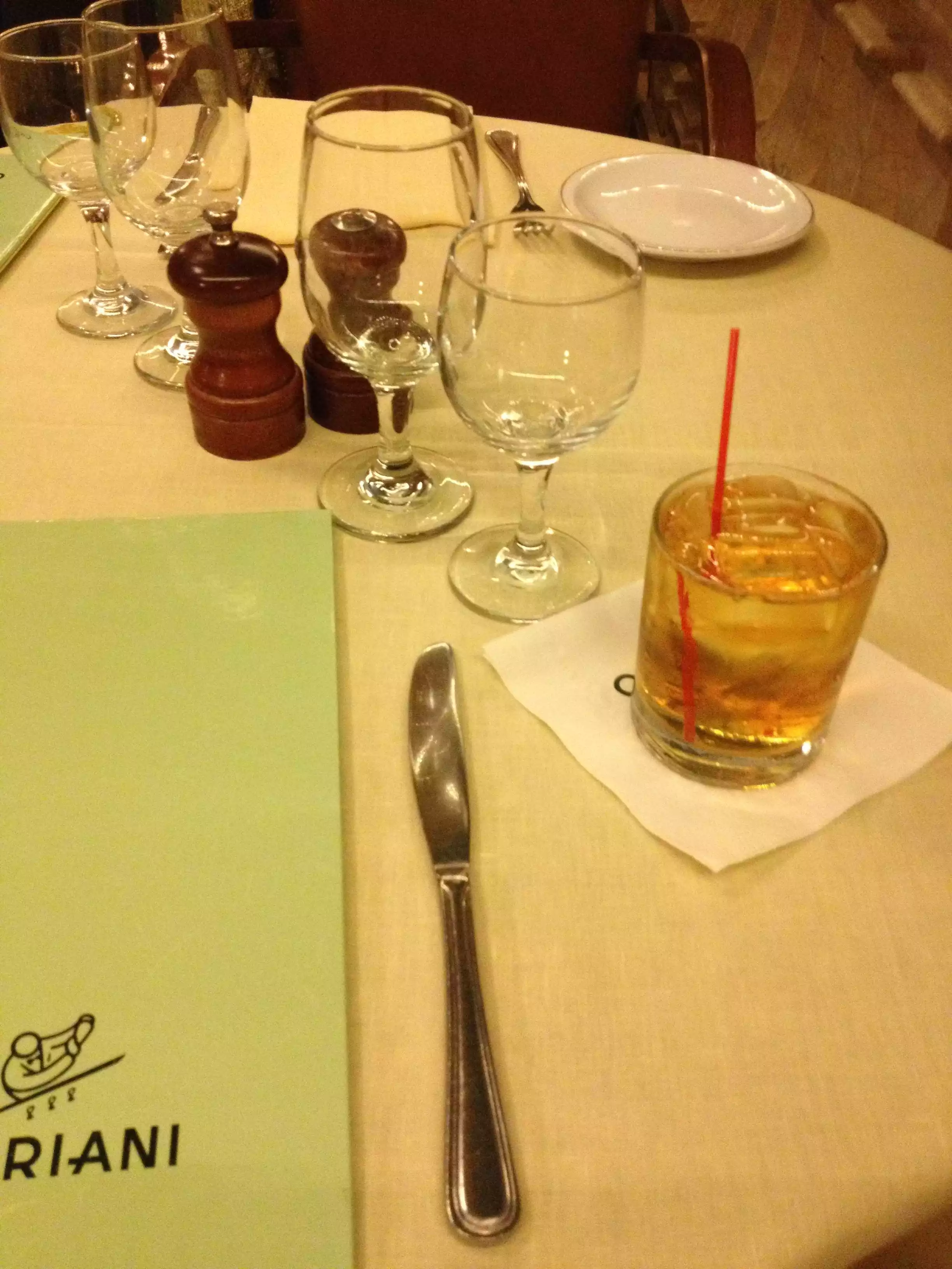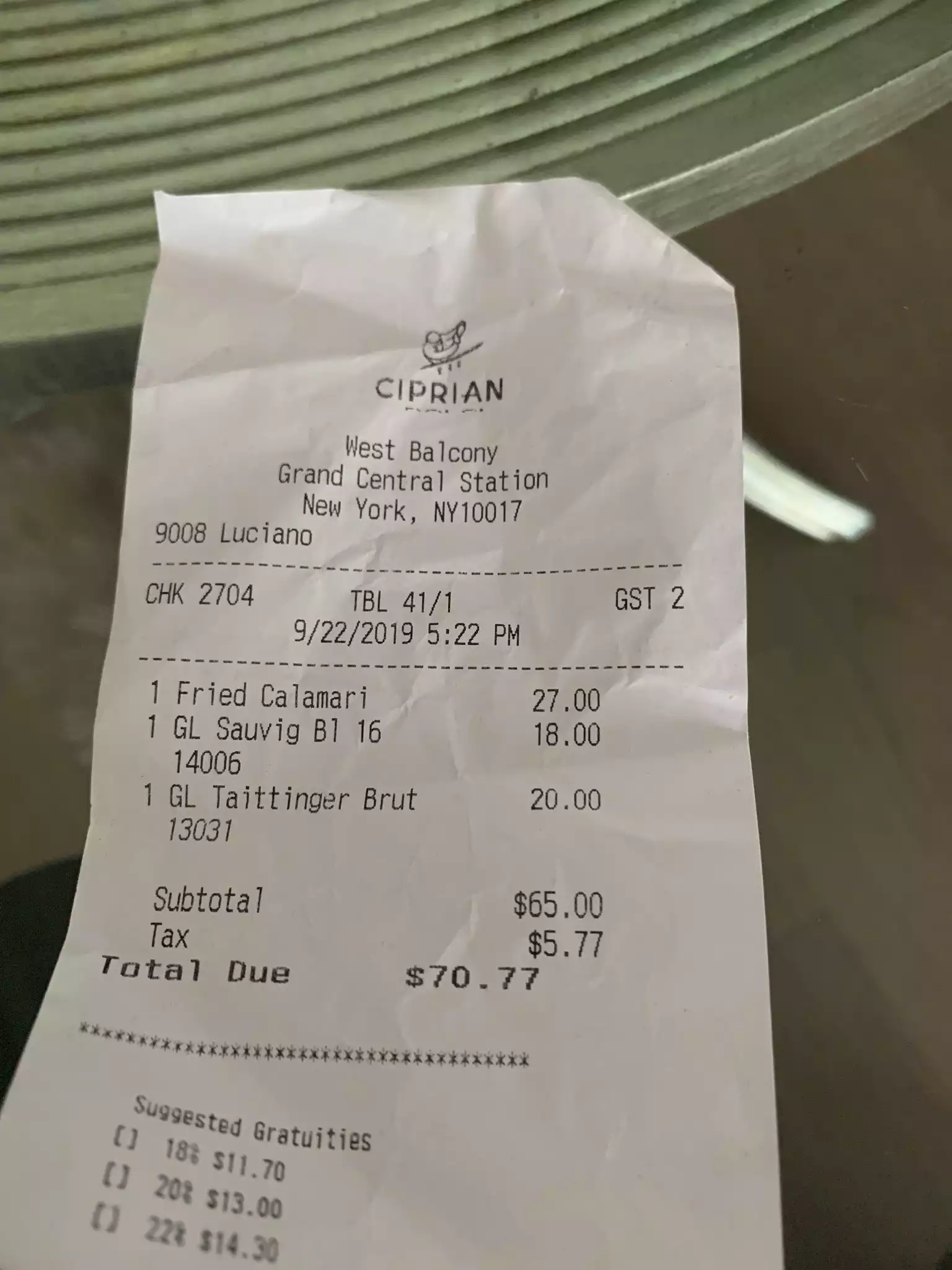 We visited Cipriani at Grand Central New York for our last night ' s holiday in NYC. We sat for a while, no drinks were offered for at least 10 mins although the place was not busy. So I called waiter and asked if we could order some drinks. " What do you want". He asked rudely. The meal itself was poor. All dishes were super greasy swimming in oil. We complained and in fairness once we finally located the manager he was very good and deducted the cost of two mains. The waiters were awful , they just stood around chatting never once asking after our meal etc. The GM was not on top of the staff checking they were doing their job. Overall a sad disappointment and a slur on the name Cipriani.
