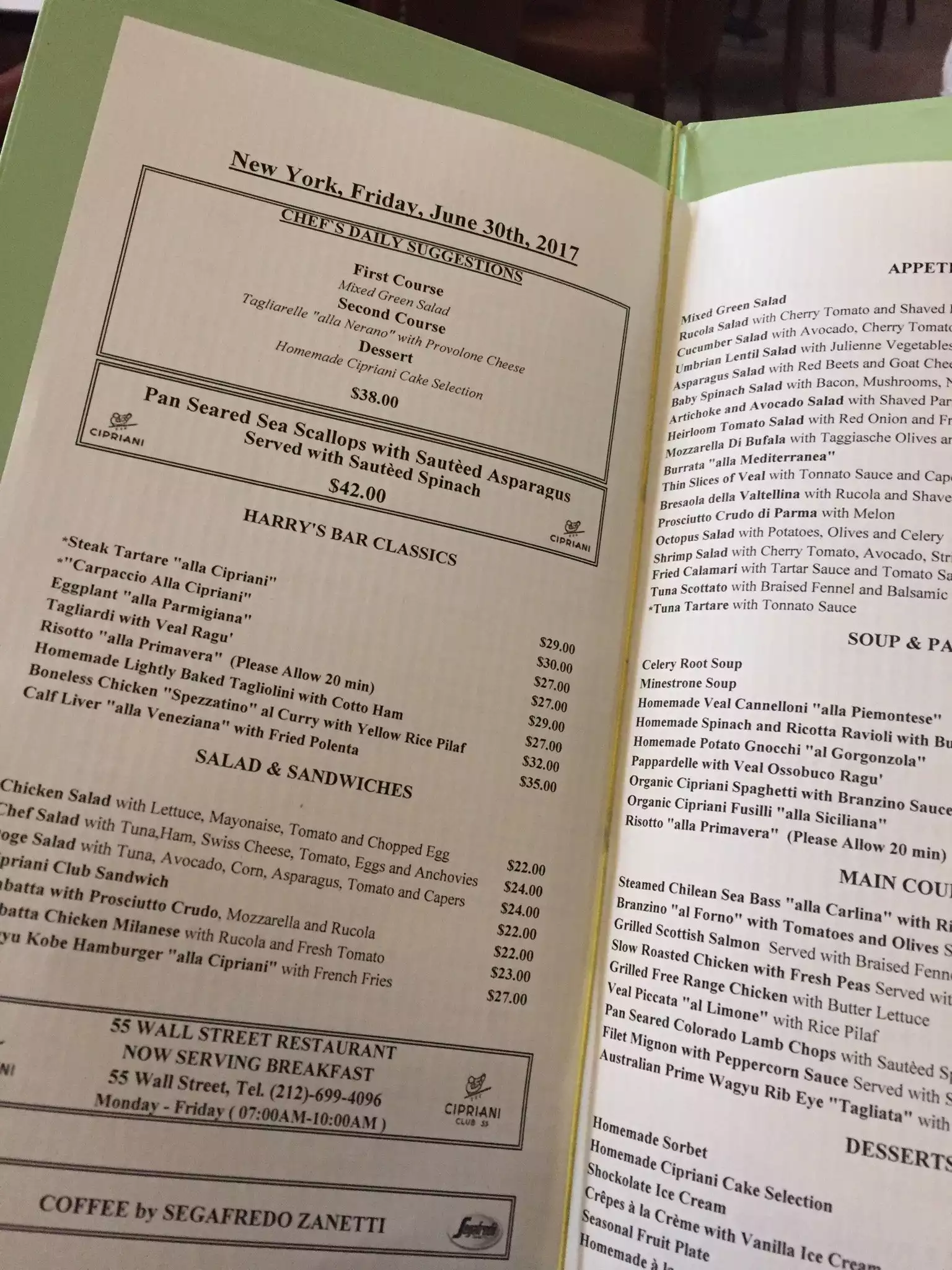 The food is outstanding, service top notch Devore is beautiful. It’s a shame that Cipriani no longer has the Rainbow Room which was excellence at its best