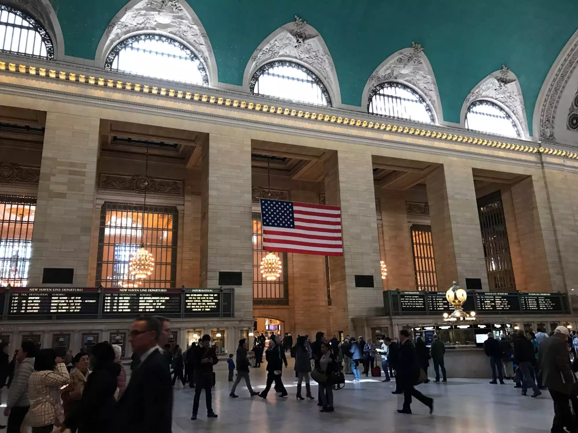 We searched high and low and finally found what we'd been looking for - the famous New York waiter who treats customers rudely and brusquely and expects them to be grovelingly grateful in his presence. We were beginning to think this species was extinct! So, having found him, ordered two glasses of white wine ($40 including tip, ouch!) and then kicked back to take in surely the most beautiful rail terminal in the world. I have to accept that the wait staff, though arrogant and aloof, seemed to be doing their job extremely well. Lovely air conditioned atmosphere, too.