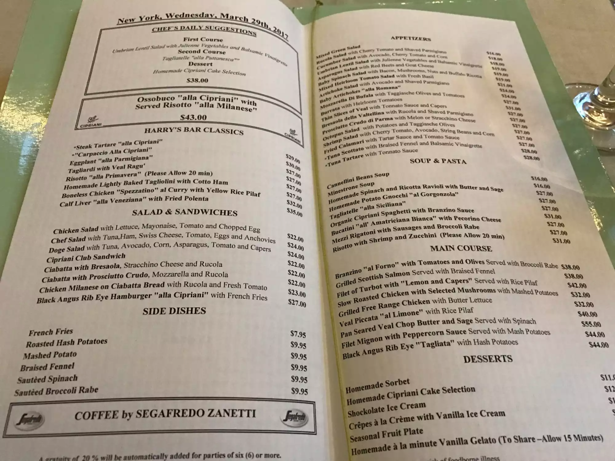 As has been said by others it is the location and experience that proved to be one of our best the last time we were in NYC when we ate here for dinner. Both the food and service were excellent. Is it expensive? Somewhat yes but for NYC with the location, quality and experience it was far better than any of the other restaurants we tried during our last visit. Cipriani Dolci exceeded all the others that were more highly overrated on many travel sites. We were there in December and I am writing this review in July because I just found the receipt I saved to ensure I shared this for others going to NYC. If you are going to NYC I would definitely make Grand Central Station one of you stops and while you are there take the opportunity to relax on the West Balcony of the terminal have a drink and dinner/lunch here and you will be glad you did. I have been to Grand Central many times in the past this was our first time eating there, other than cocktails at the Campbell Apartment.