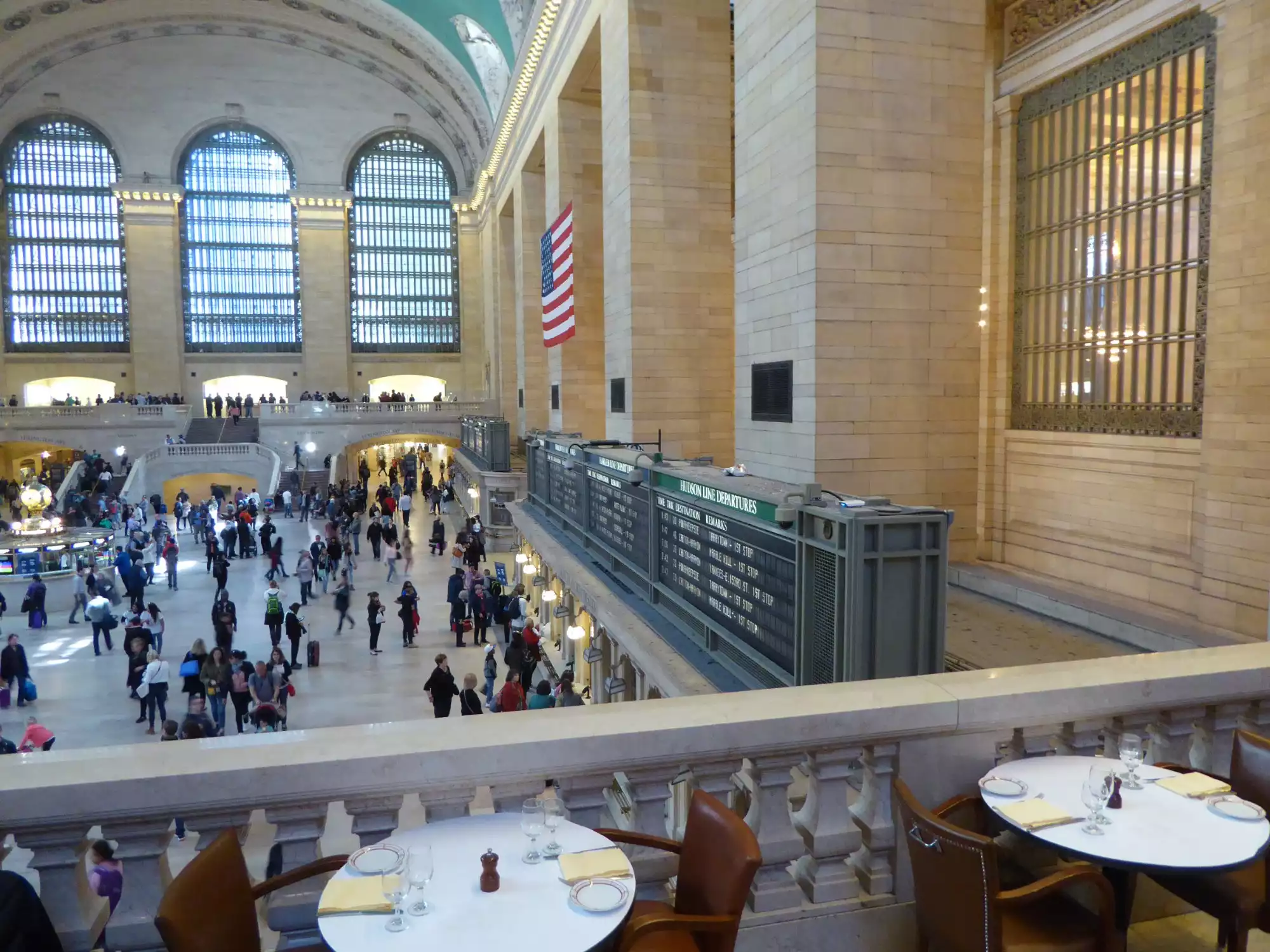 This New York City institution - which has a full restaurant across the street and a few other locations around the city - is a great place to get familiar with Grand Central Terminal (GCT). The balcony is above the main concourse and is a fairly small area - but open to the space (no walls/ceiling), so you really have a feeling of being in the GCT. Cipriani's is a white linen place and pricey, but a really, really great way to savor the grandeur of GCT. If you're an architecture buff and visiting GCT to see the building, this is the place for you.