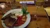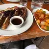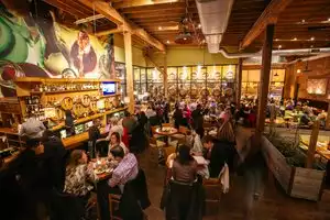 Nice atmosphere. Waiter started out really good. Recently moved back from TX. We were a large party, and I do know it takes time with large parties. Started with drinks. It should not take 30mins to bring a can of beer and a glass. It took over an hour to get our food and when we did, the fries were cold. One person ordered their shrimp skillet, how about 20mins later oh the two people that ordered the shrimp skillet, we don't have it. Those two had to get the menu again to order something else. Like I said I know large parties takes time. A good waiter with customer services skills would have come to the table, I do apologize for the delay today, can I get you all something to drink, or we would you all like an appetizer while we wait. But nothing. Waiter was slow, confused. Manager comes over later ask how was everything, he heard the brussel sprouts are burnt, oh we can get you more, Im sorry. No thank you, I will pass, at this point it had already taken over an hour to get that. Then he was told how the fries were cold, even the manager walked away after that. Terrible service and definitely not worth the price.