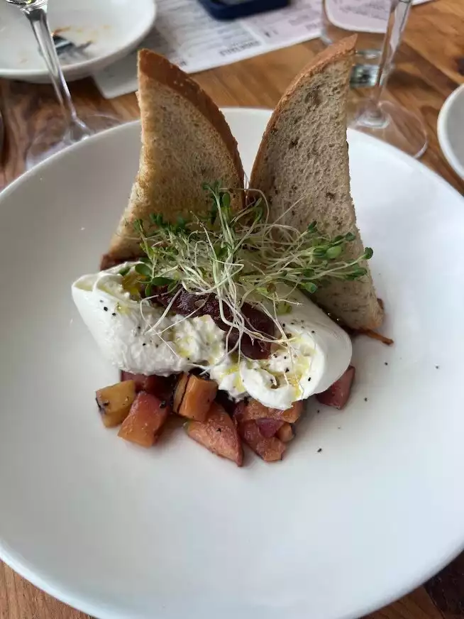 The staff were friendly and helpful, although there appeared to be a lot of tension with management. There was a large event going on and they may have been short staffed. The food seemed to be from good ingredients but seemed rushed and was disappointing. We had the flight of red wines and the classic flight of wines. They were so poor that we drank very little of them. The reds were all very acidic and tasted so similar they couldn’t be distinguished. The whites tasted strange and as if they had been watered down. Neither of the flights had identification of the different wines. Overall we were left disappointed with our experience.
