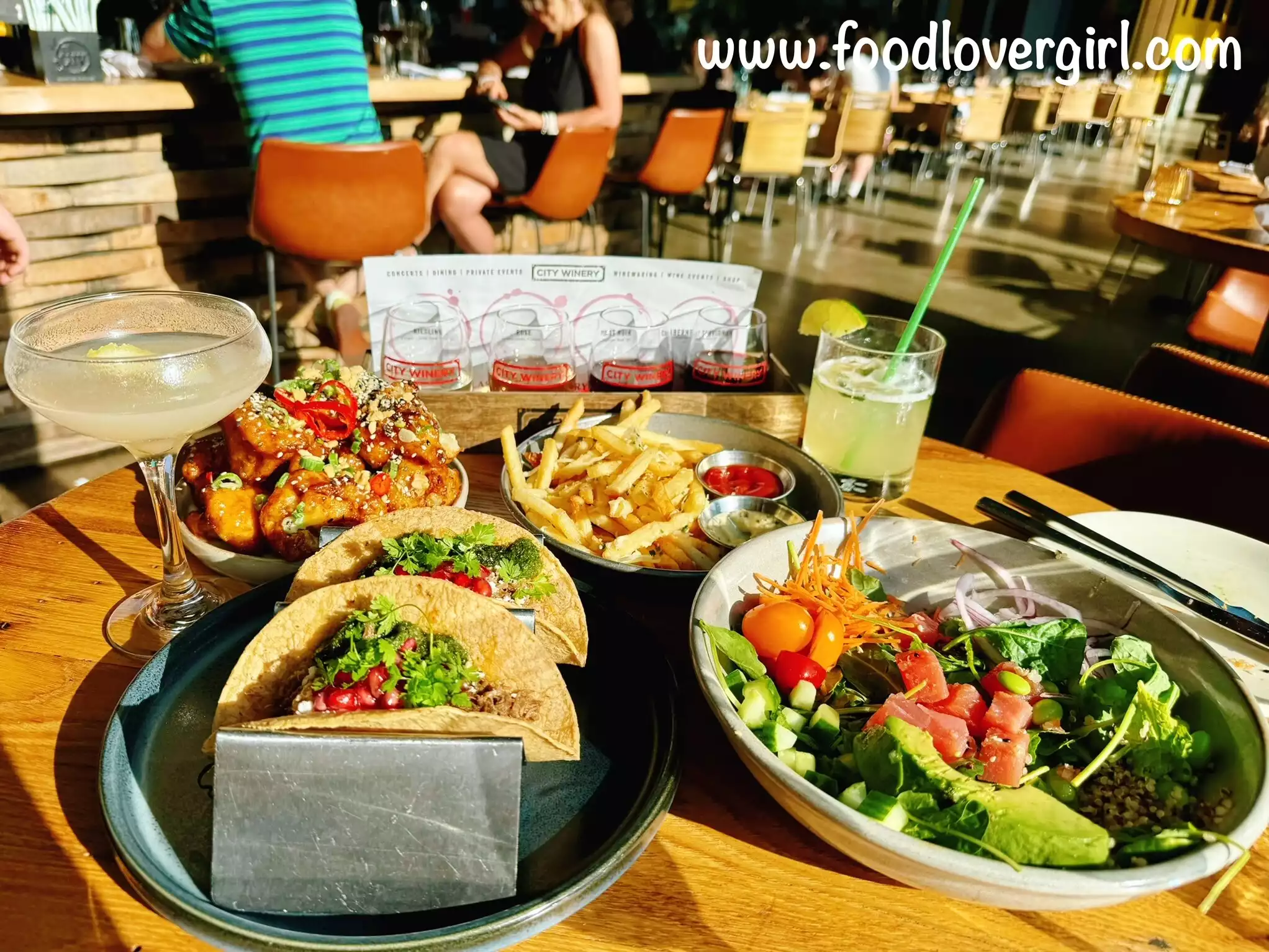 Wonderful lunch with wonderful views. First time at a city winery and really enjoyed it. I did a wine flight of red and my husband did a classic flight. Both were good choices. We also ordered a cheese board which was hugh and tasty, a Burrata, and a summer salad. All the food was excellent as was the service. Would absolutely return here.