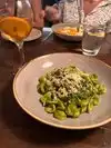 Good place for a range of eaters. We had vegans and vegetarians with our party and they were able to get a good meal here with an entire vegan section. The vegan lasagna they said was the best they ever had. Also ate the zucchini flowers for starter and the Pappardelle with short rib for dinner. The zucchini was excellent. Very good. Pappardelle was as a bit disappointing way too little pasta and too much sauce. Orange wine was also very good!