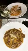 We took two braised pappardelle and, nothing to say, very good. Generous, tasty portions, the dishes are accompanied by a hot focaccia with green sauce. Very kind waiters. Negative note: two plates of pasta, a sparkling water, a beer, two coffees, a smaller tip than the "pre-established" amount: 99 dollars... I recommend it for the quality of the food, but the prices are definitely too high.