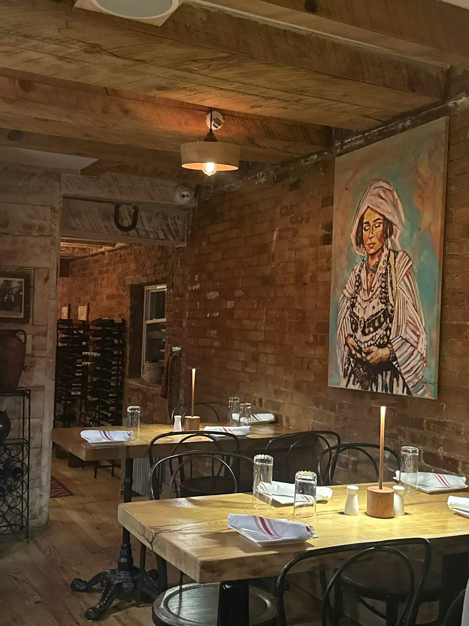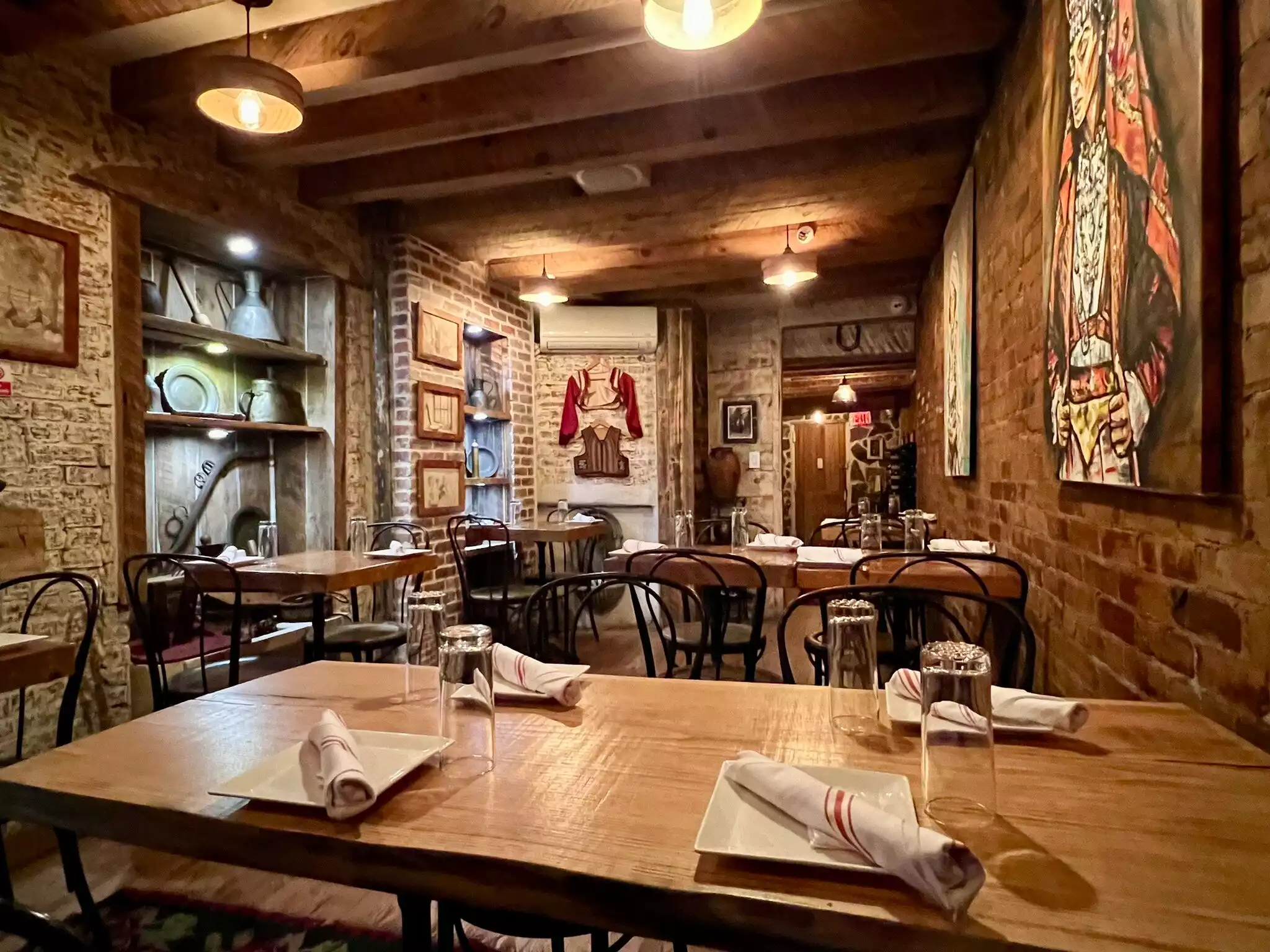 Atmospheric and cosy restaurant with outdoor seating too. First time eating Albanian food and we enjoyed it. Lovely service. Enjoyed the pepper dip with warm bread and the veal dumplings for starters. Meat balls and lamb with rice. The winning dish was Sheqerepare for dessert. Yum! On the expensive side for portion sizes but friendly service. If you want to try Albanian food in New York would recommend.