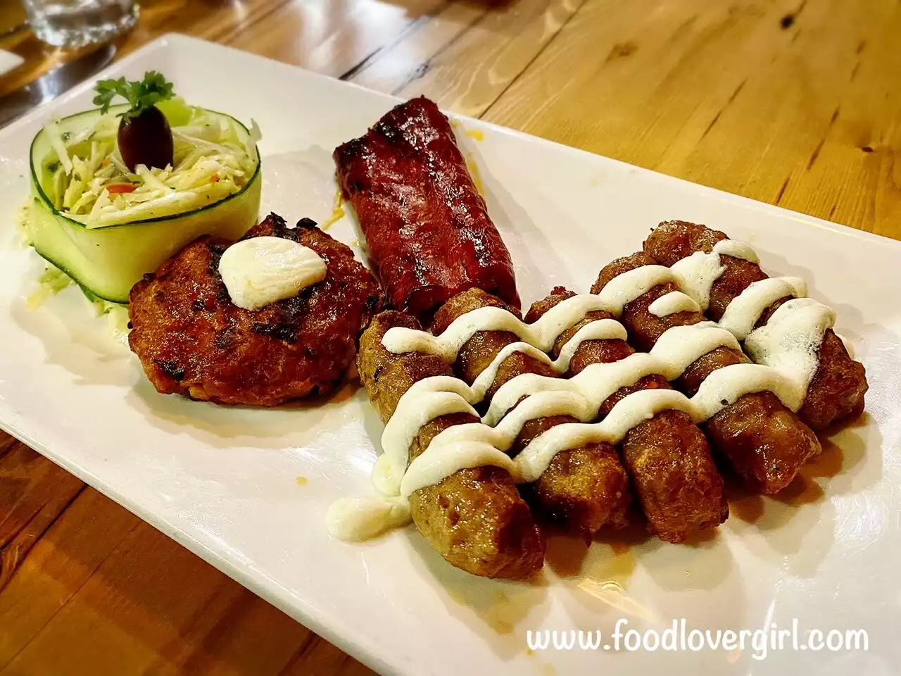 We recently went to Çka ka Qëllu, a rustic restaurant offering modern Albanian and Kosovan dishes. Once you step inside, you are transported to a warm, old-timey, authentic space. It is covered with wood and bricks, earthy tone that makes you think of grandparents’ or great parents’ home, maybe. There is a nice-size dining room at the front, and another dining room in the back. In between, there is a connecting space with a few more tables. For appetizer, we ordered some dips with bread and a salad. We want to try Mediterranean Salad or the Village Salad, but somehow, the server simply put in order for the Shop Salad… It seems like you need to demand what salad you want, otherwise, it might be selected for you??? Anyways, the Shop Salad was a really nice. For the dips, we got Tarator, Pickled Pepper, Sausage Dip, and Ajavar. The bread came piping hot! The inside was hallowed, made it easier to tear apart and dip into each dip. The creamy dips had more of a mild flavor, and the chilled ones had more distinctive, strong flavors. We enjoyed them all. For the main, we ordered Mixed Grill Platter to share. It comes with a combination of qebapa, qofte & sausage. They all had similar flavors, but all so tasty! Packed with flavors, so delicious. We ended our dinner with a dessert to share as well. We ordered Albanian Trilece. It was pretty darn good dessert! We had a nice dinner hear, certainly interesting. The service was not so warm, but our water was always filled, and we were well taken care of. A nice change from any other cuisine you find in the city.