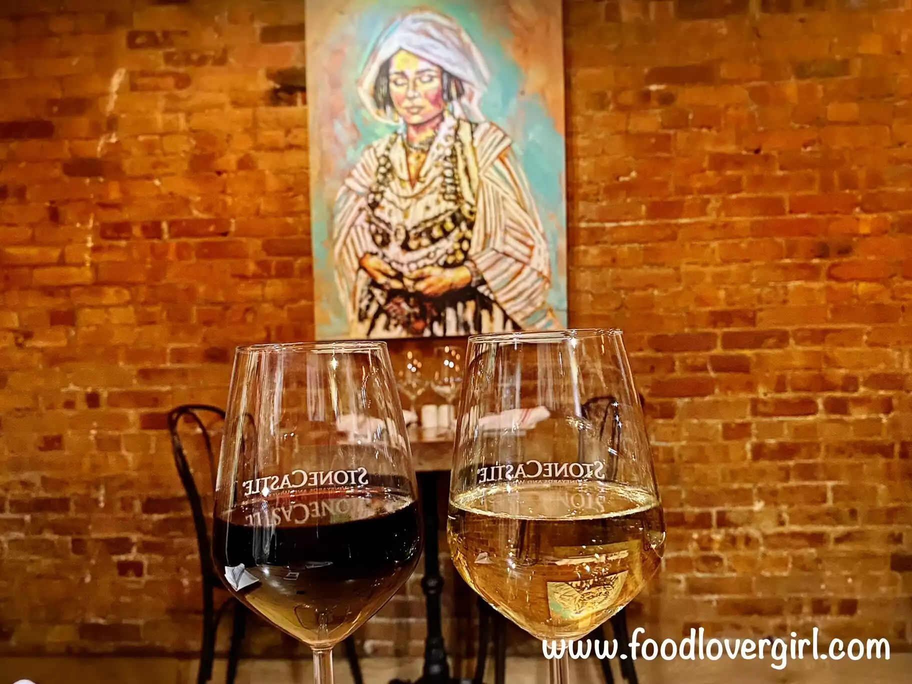 Two nearby but not visible additional interior dining spaces hide out. Don’t leave the sacred miniscule in front dining area. Why? You have secured an experienced/opportunity/special moment/precious space. You are seated amidst and viewing a plethora of legally required signs warning of different threats, fire…prohibitions, more. Brickish mini front space. Even the plates baring each appetizer approached the table’s space limits, as if to emulate their originator and leader, garrulously chatting parallel to our table. Ye immovable faced waitress stolidly tall and seemingly director of the order taking stands up while barely chatting with the minister of wine no more than 12 inches away from her locale. The immutable one resembles a stolid but spiritually designed immaculate meticulous “brick” essence, beauty to recall for eons, who rarely sideways eyes back at her viewers. Oh, yes, while gazing aloft at the darkly hued clothed one no more than three or four feet away, taste dips, be they pickled pepper, ajavar, et al, soothing bread, and beyond.