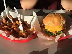 I heard a lot of great things about the burgers and fries here so I had to try it. The burgers are cooked until there is no juice so if you like fully cooked burgers this is the place. The fries are skin on and are cooked in old oil so if you don't mind the fries having different oil flavor you would like this. The shakes are not thick, we asked for extra thick and got slightly watery. Personally I have had better burgers and fries at Denny's then here. But to each there own.
