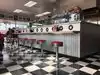 Typical 50s soda shop...limited menu...filled with locals...owner knows your name...great shakes and burgers..fun photos on wall...red leather booths and stools at the counter...