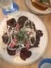 Before I get started on the food, I couldn’t understand how a small restaurant could be sooooo loud. Whether it was the acoustics of the building or something, we were just 2 of us, and could not even hold a conversation without saying “what??” every sentence. That started the evening on a negative note. I was looking forward to the food, and was quite disappointed. The descriptions sounded great, but most dishes we had were quite bland. For the price we paid for 2 people, including a glass of wine each, it wasn’t worth it