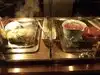 Plenty of standard American fare, well cooked, and very casual. The scene is whimsical, with three stories of tables in various settings. Redwood tree anchors the second floor with Bison and various other Americana. The cafeteria is on the main floor, with a roast section, a grill, a salad bar, a pizza station, and of course plenty of dessert. Easy to feed various tastes, staff is great, facility was darker at night, but everything looked clean. Although it was busy on a Friday night, there were still plenty of hidden tables around the second floor, near the bar. I also noticed plenty of families downstairs on the first floor.