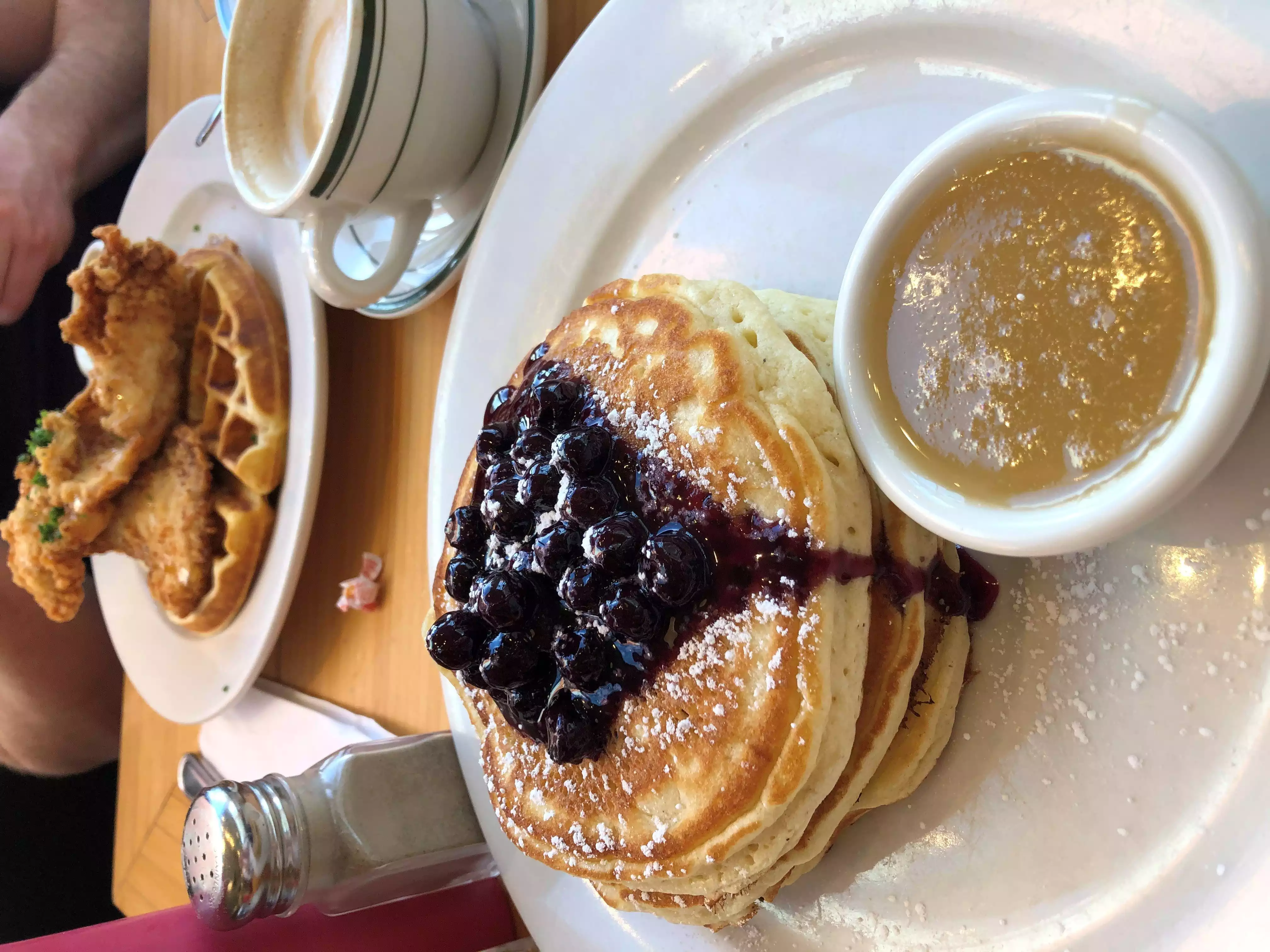 I had the best blueberries pancakes ever, the staff amazing and I'd definitely return there. On another occasion I had the waffle with fried chicken and it was good too