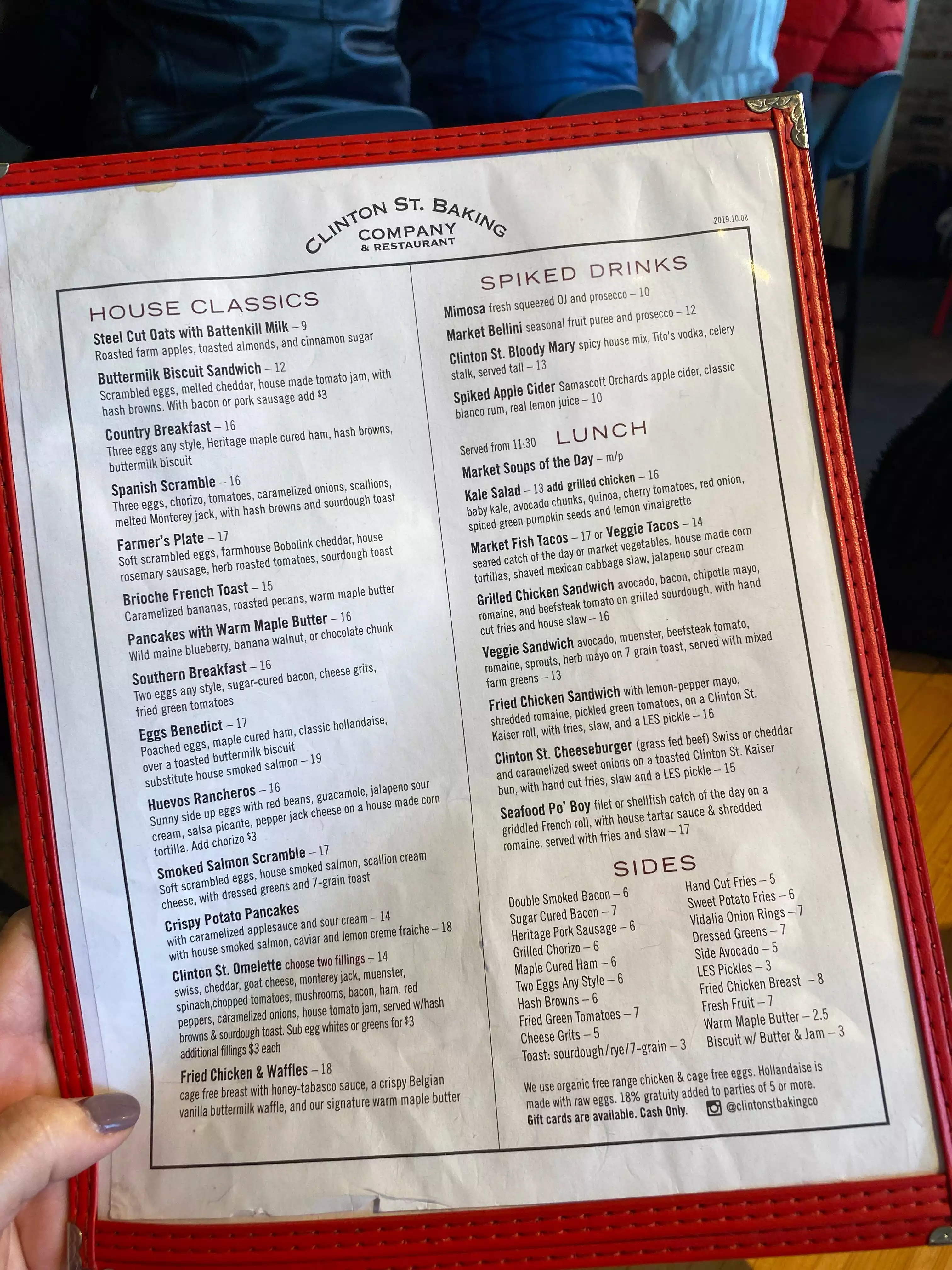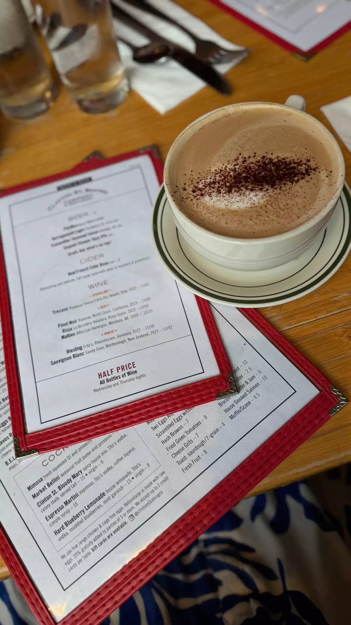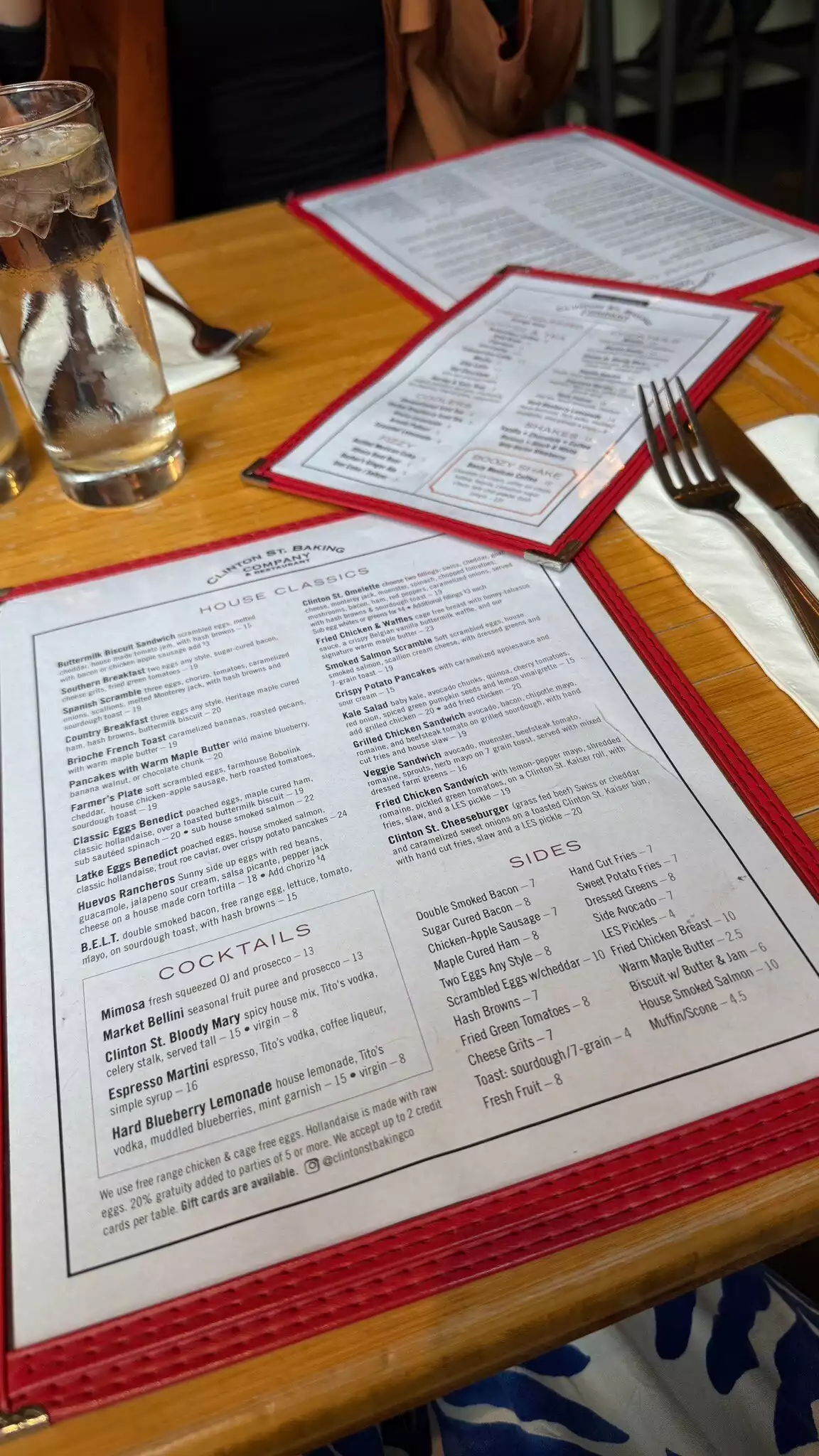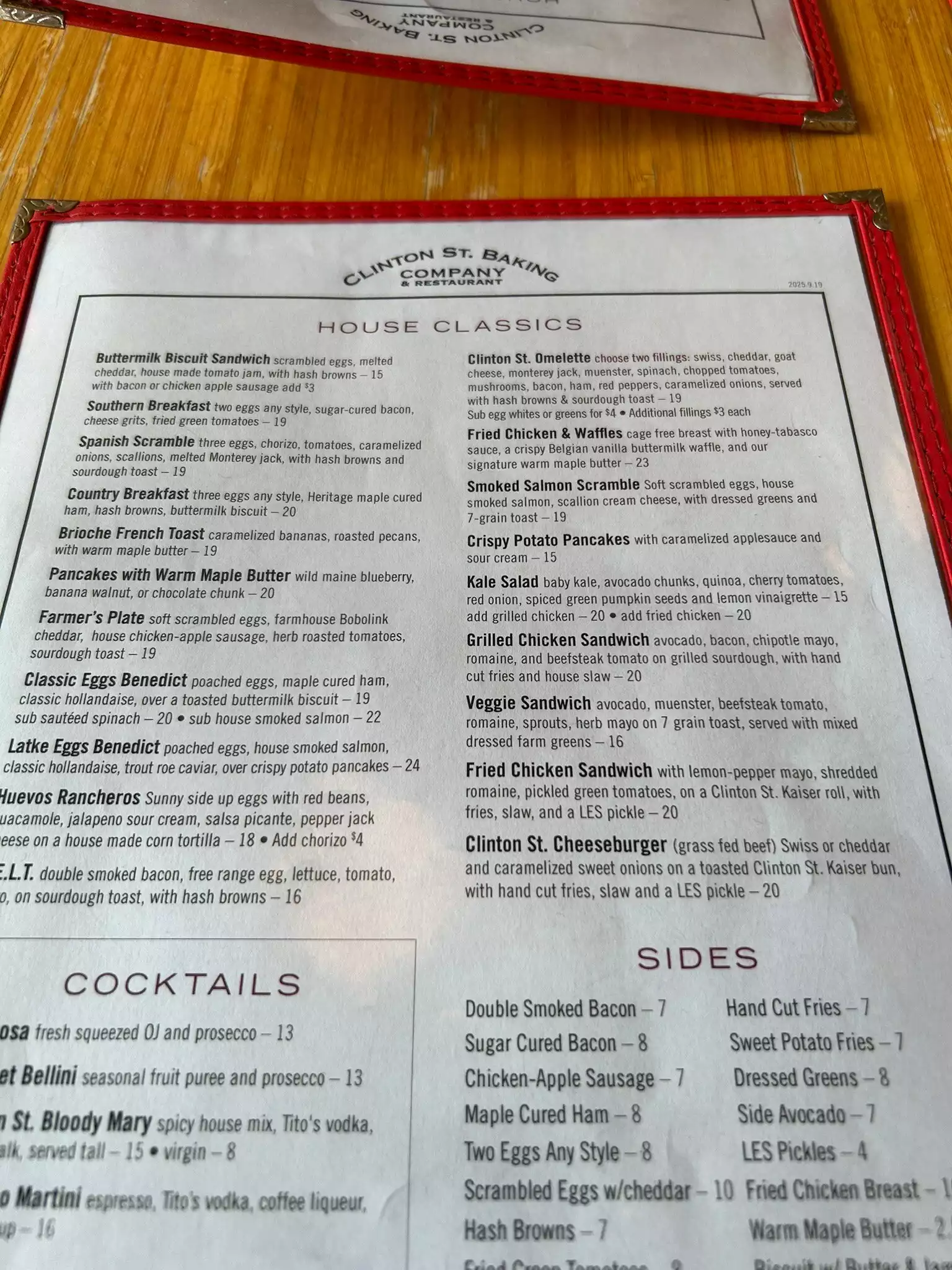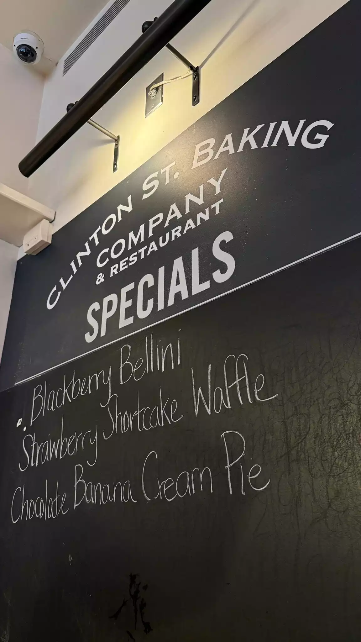 I gave up waiting on line for breakfast, so jumped at the chance to have breakfast for dinner. Here’s the deal: We made a reservation for 8 pm. A few hours earlier tried to make the reservation for 7, but at 4:30 no one answered the phone. We went back to Resy and they said no availability. We got to restaurant at 7:45 and it was basically empty. So, restaurant, figure out a way to better manage your tables. Now the food: I had the pancakes with bananas. they put the bananas on the top, none inside. Isn’t that how it’s done? They also put cinnamon sugar on the top - not mentioned on the menu as an ingredient. I can’t stand cinnamon, but decided not to “complain.” So ate without saying anything. The warm maple butter is sooo sweet had to ask for regular syrup. We also had the salmon and latke hollandaise. Both were good. We also had the chicken and waffles. My daughter who ordered this also thought that the maple butter was too sweet, so she asked for regular syrup for her waffle. She was told that if she got that they would charge us an additional $2. Unless we gave the syrup back. Really? I told the waiter to take mine back, knowing I was not going to eat it. However, I should warn you, I did put my fork in it to taste it. Not good quality control, restaurant. Finally, I would add that when we arrived at the restaurant, there was a full, overflowing, garbage pail right next to the host/hostess stand. It was pretty much a turn off when we arrived. I also noticed many of the tables were empty but had not yet been cleaned. And then when we left an hour and a half later, the garbage pail was still overflowing, never dumped. Needless to say we were quite disappointed. Not sure a return visit is in the cards. Sorry, Clinton Street.