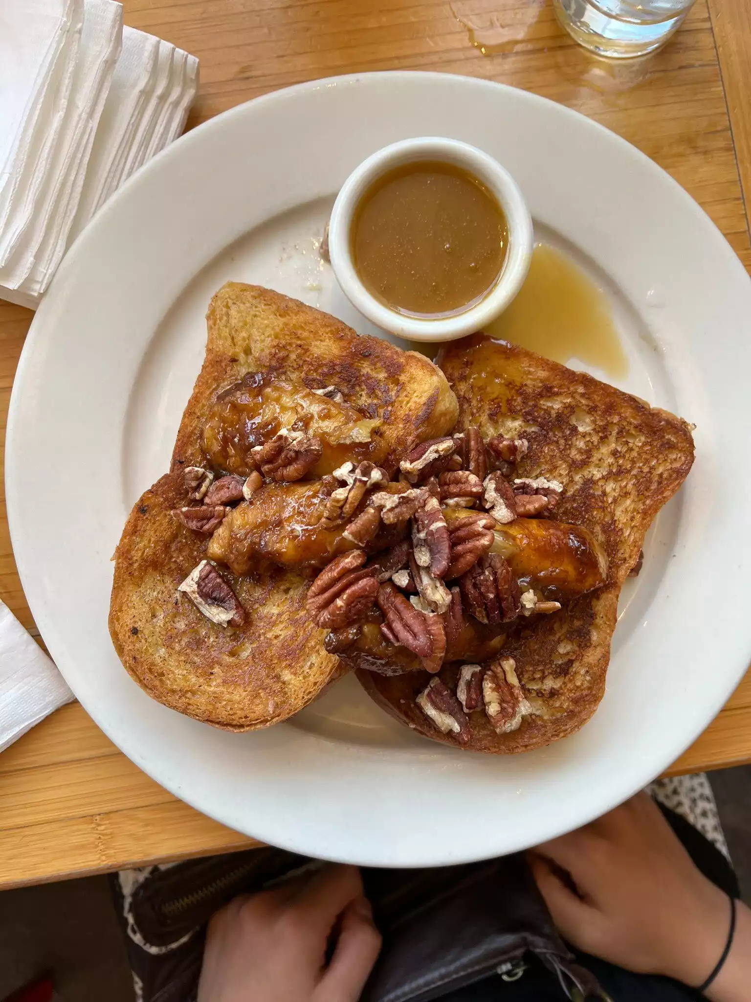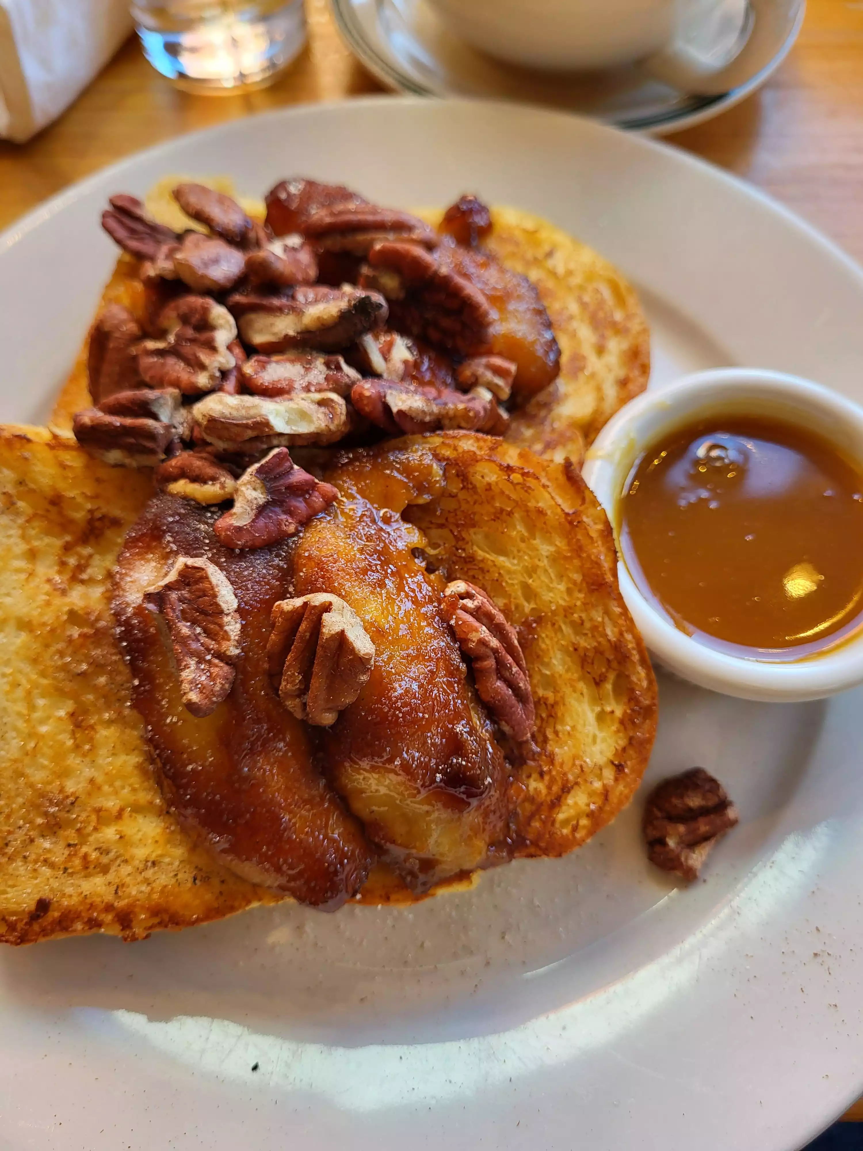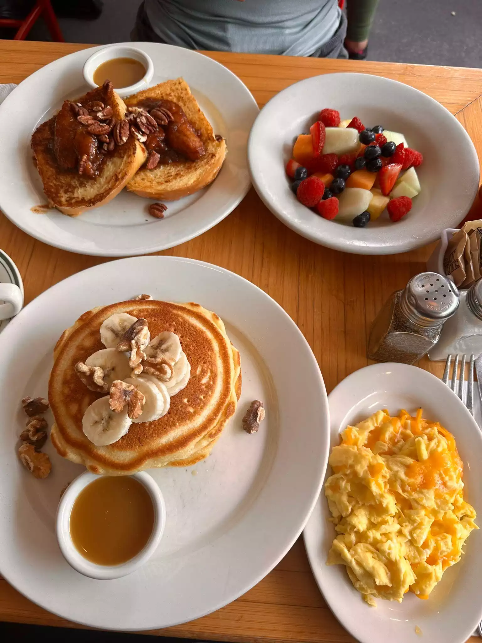 We came here a long time ago when it was tiny and really enjoyed our meal at the time so we were excited about coming back. We got there right as the doors were opening and there was already a long line. They will not seat you unless the entire party is present but it was just the two of us so no problem. They also tell you right away that it’s cash only. I got the impression since there were so many people waiting that they wanted to keep us moving along and not linger over breakfast. The only butter was foil wrapped and very cold so it could not really be spread over the pancakes - which we wanted to have without fruit or chocolate on top. Also, there was no regular syrup - just the caramelized praline-like sauce. I thought it was yummy but hubby did not like how thick and sweet it was. Granola was a little bland and not very crunchy. Definitely not the lovely experience we had years ago.