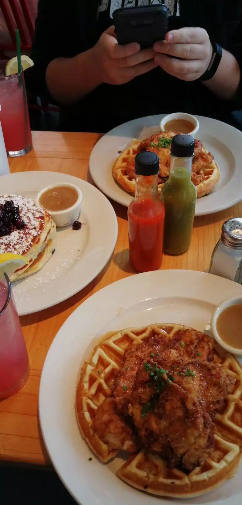 Food was extremely delicious, service was quite refreshing, but the wait was a grooling 1hr. Wish they offered an online reservation an or waiting list before you arrived. I had the fried chicken and waffles and although savory, the syrup brought together a prefect balance of sweet and salty. BTW as much as I loved the Chicken & Waffles. The blueberry pancakes my sister had were even better! Idk what it is but whatever they use, It practically melts in your mouth. Definitely plan to return but get the waiting list availability online to save time. There was a lot of confusion in the front on how to get in line for a waitlist.