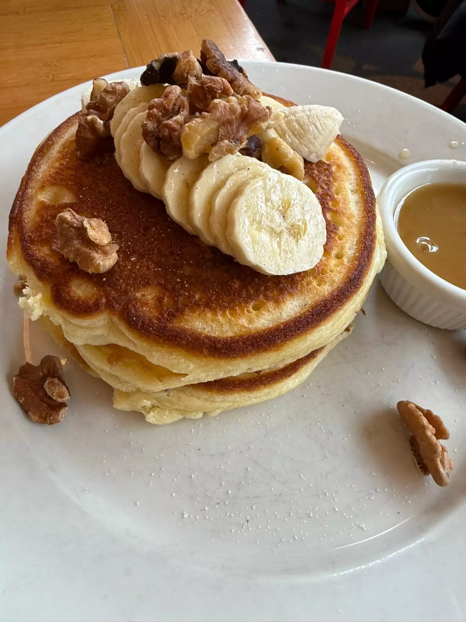 Looks like traditional diner in Manhattan, I tried banana walnuts pancake, and they were delicious. The service is good too