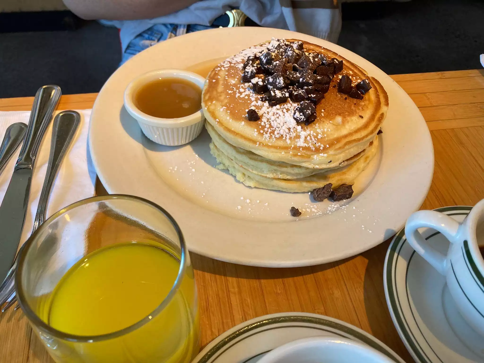 The pancakes are really good do not mistake me - but nothing more. They are not worth 20 dollars. Good service