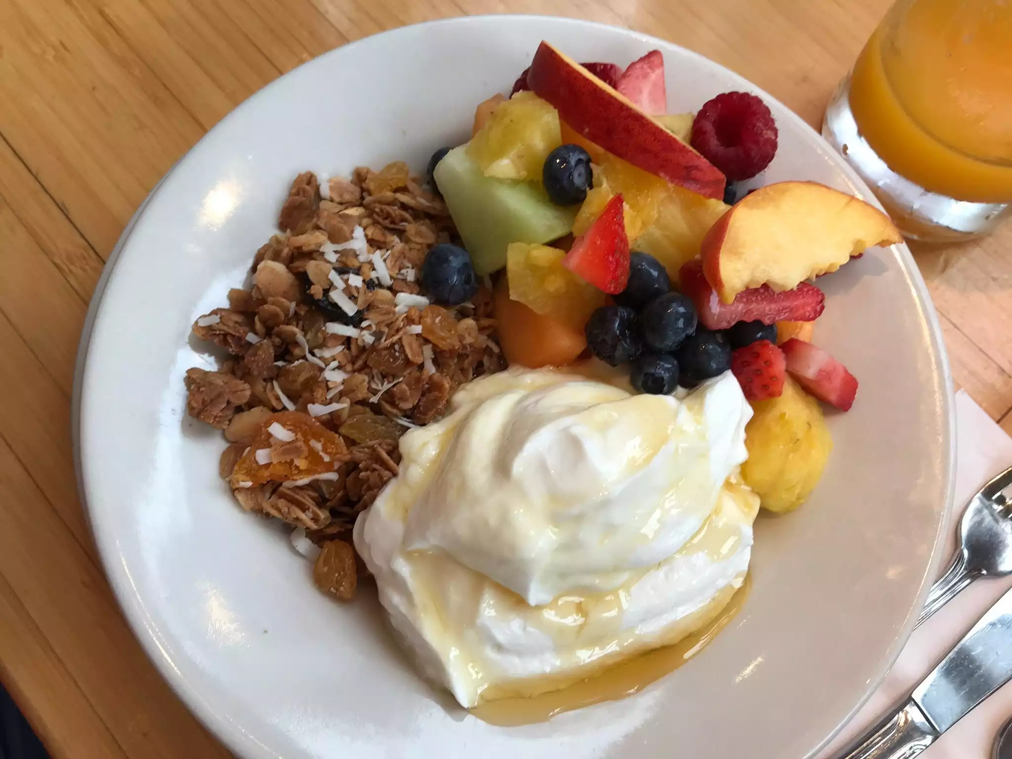 Great location. Great food. Ready to come back. Pancakes were great. Parfait was delicious. Omelette was very good.