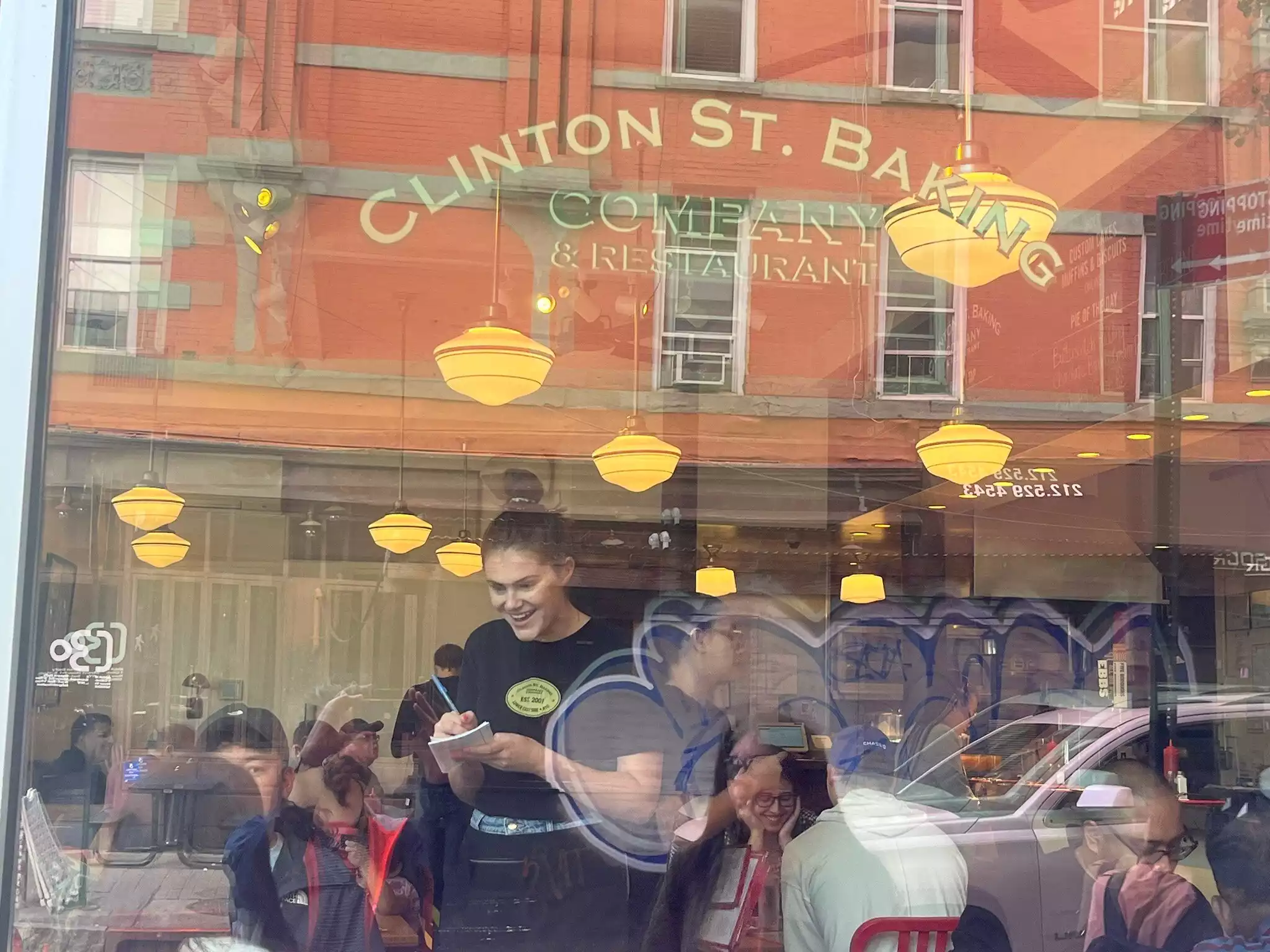Clinton street bakery was just around the corner from where we stayed in lower east side so knew best shout was to book as they always seemed busy. Such a good place for brunch / breakfast. My wife enjoyed the pancakes with blueberries and for me the French toast with sautéed banana and walnuts and maple syrup. Delicious and a real treat before a day walking and exploring. Staff were efficient and service prompt. Only downside was the coffee - a bit lacklustre in flavour but all the same a really great spot. Thank you