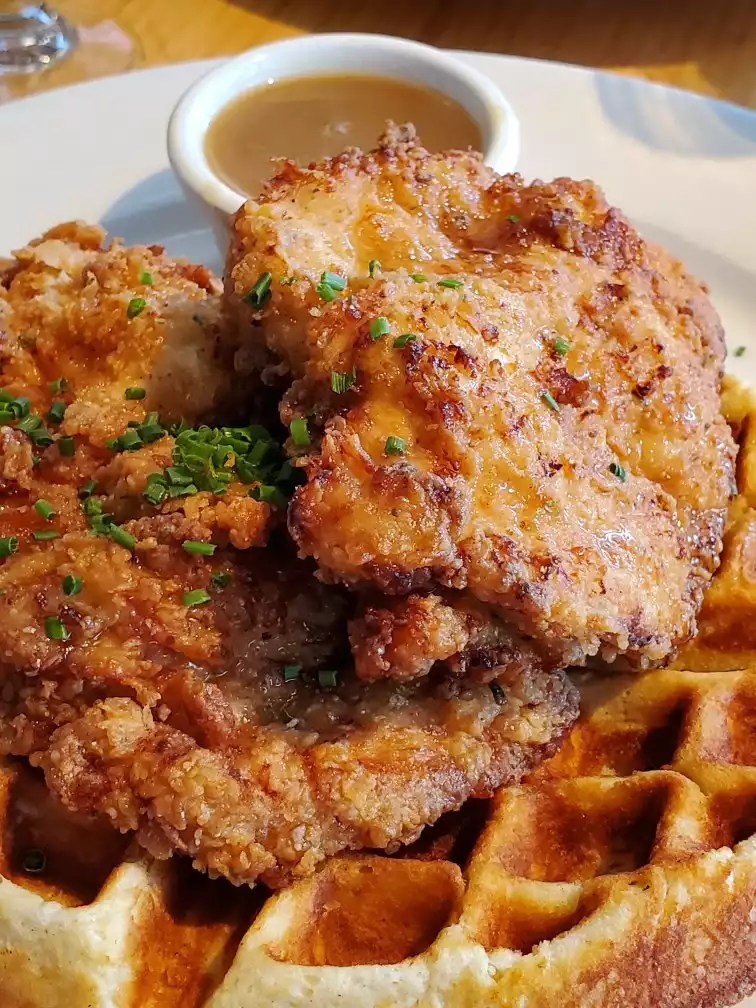 We made dinner reservations as it was February and we didn't want to waste valuable time on a short trip waiting in line for brunch. My husband was excited to go for their chicken and waffles, and their milkshakes. While the food was fine, (I had the buttermilk fried chicken dinner) and plentiful, it wasn't anything special. We wouldn't have waited in the cold for it, and we were disappointed that we wasted one of only three dinners on a four-day trip on this restaurant. I would have chosen a breakfast item (which they're known for) but the options I wanted was only available in the AM.