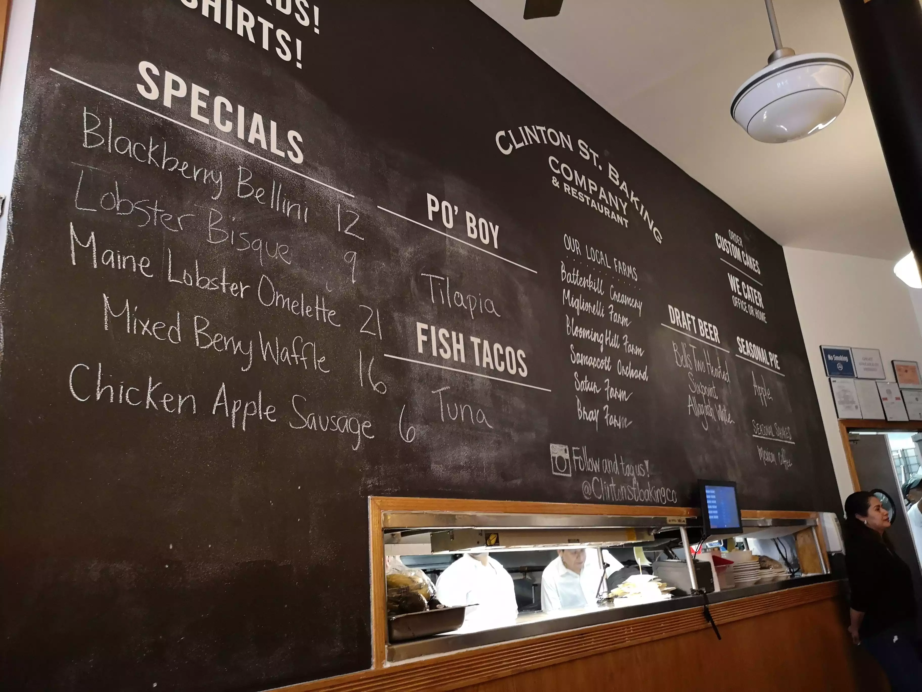 ...in New York for a short city break, en famille. But where to have lunch prior to our flight home from JFK? #2 son lead us to the Clinton St. Baking Company & Restaurant, on the strength of the good reviews and we were not disappointed! I had the fish tacos, while the others chose pancakes, washed down with draught, craft beers. For desert we shared a wedge of apple pie, washed down with endless coffee. It was all delicious and what a wonderful finale to our trip. As we were leaving the kind waitress handed us two bags of scones for our journey. And they were delicious and much appreciated as our flight was delayed. Thank you to all concerned at Clinton St. Baking Company & Restaurant.