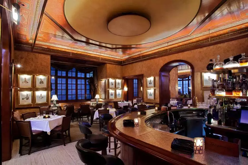 Low lit, luxurious men's club feel. Bartenders mix excellent cocktails. Waitresses are very attentive. Since this is an establishment that allows, even encourages smoking, large ashtrays are everywhere, and are replaced with clean ones every 5 minutes. Large cigar selection. If you want to entertain a smoker, this is the place.