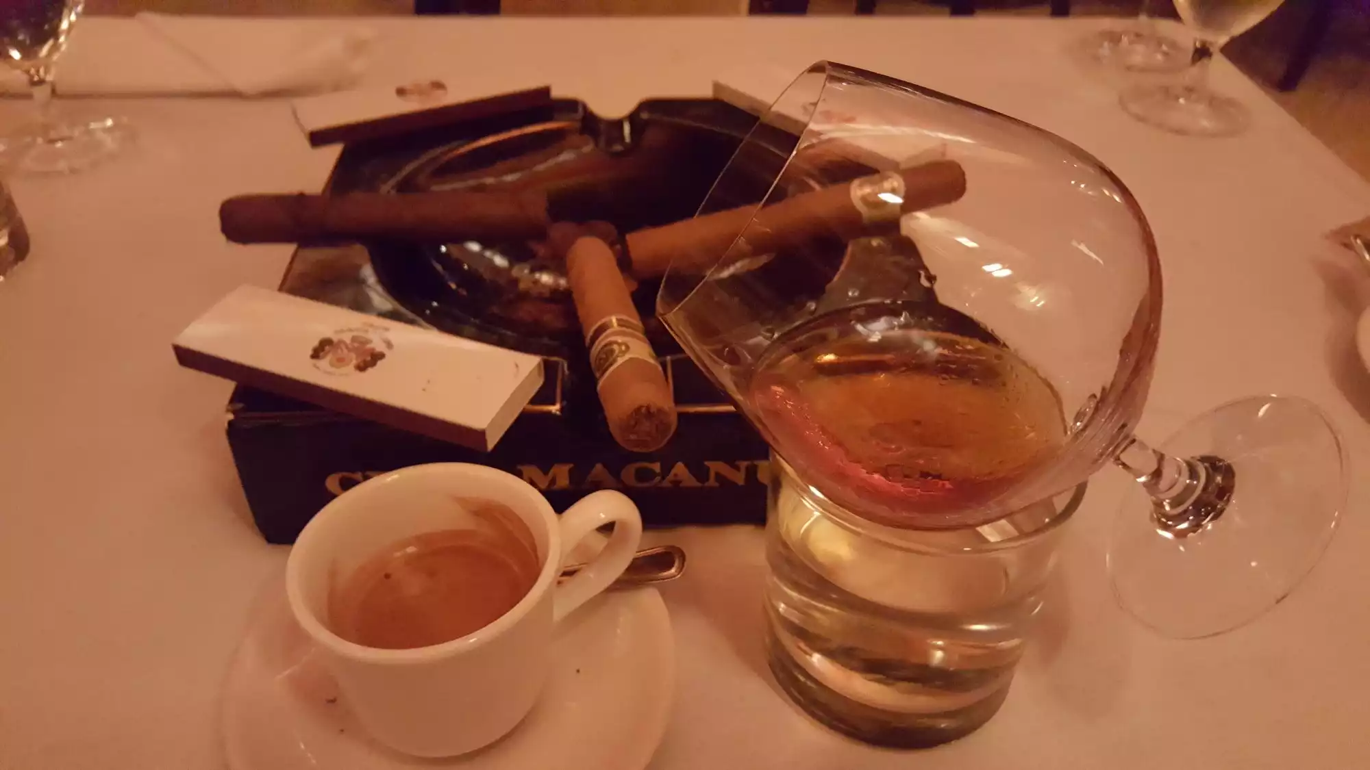 We went for an after dinner drink and a cigar. The drinks selection is very good, with good variety of wines and also many single malt scotch. They even had Fernet Branca, a rarity that my wife appreciated. Of course there is smoke and the smell of tobacco is all over the place, but that is the good thing of it. Very good a fast service.