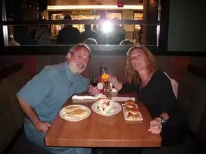 The servers were not too excited or speedy but the meal was OK - overpriced, but it is an airport location so no surprise there. Fish entrees were good, did not try anything else