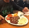 Came here at 10 to 10 asked me to sit by the bar. I politely asked for a table. They obliged. I knew what I want and asked for it right away. I had to use the bathroom which was outside the restaurant. One of the staff said it’s ok to leave my stuff. Keep in mind that this is late at night and there’s not a lot of people. So another time this may not be good or permitted. My ribeye came within minutes when I returned back to my table. It was cooked to my preference. Seasoned adequately. The sides if vegetables medley and fries were also satisfactory. The whole meal filled me up good. I’m completely satisfied.