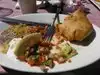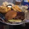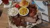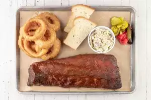 We shared a “choice of 3 meat” combo that had ribs, pulled beef and brisket. We had onion rings and beans for sides. They also put bread and pickles and pickled onions on the tray. It was excellent. Our server was kind and helpful.