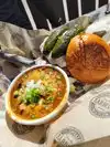 Smoked brisket is the bomb! Tender like butter, just the right amount of smoke, and terrific flavor. Same with the chili, homemade pickles and beans. No knives needed meat melts in your mouth. What a find! Cocktails and shooters are terrific too!