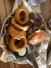 Pulled pork or ribs & onion rings. Our go to for lunch. Large enough for whole family style get togethers. Beach attire welcome as the crowd passes by. Yahoo! Named for the famous roller coaster across the street, watch as is whizzes by.