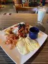 A few friends recommended we try this place and what a pleasant and plentiful suprise! My husband had the Machaca breakfast and I had pancakes with a perfect over medium egg, a dollop of whip cream, drizzle of caramel and berries. DELIGHTFUL! My frst time trying Mexican Coffee and I had two cups which is unusual so you know that it is good! Staff was friendly and attentive ☺