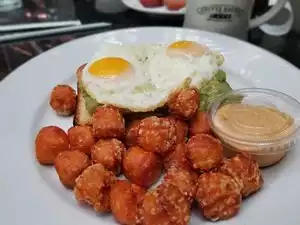 I had the Challah French Toast Sandwich :Bacon, over-easy egg and cheddar cheese. The food was mediocre at best and the potatoes were burnt. When I brought this to the manager's attention she brushed it off as no big deal. I was disappointed because the coffee is great and the place has great ambience.