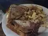 Went and had breakfast here this morning. Had the infamous French Toast sandwich and wasn't very impressed. It was extremely soggy and too sweet for my taste. We also had the chicken apple hash and it was extremely greasy and didn't have much of a taste. The eggs were bland and covered with a little cheese. On the positive side, the ice coffee and our waiter were terrific.