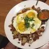 Breakfast on a weekday and the place was almost full. Our server had an attitude. Shrimp & grits on the menu was excellent. Poached eggs on a bed of Chicken Apple Sausage Hash was not up to the mark. Pancakes & maple syrup with mixed berries ( extra) on the side was good too. Service a little slow. Parking was a little difficult to find.