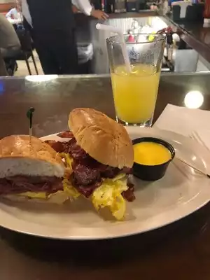 I like this old school place that still delivers a classy atmosphere with delicious cocktails. The bar and eating area have a great vibe and there are some happy hour specials. The lamb and prime rib sandwiches we got to go were great -- didn't order the sides since the sandwich was my focus. Speakeasy: Definitely worth checking out! You will find the speakeasy through the door with the white sign (just ask). On Monday night, the seats filled up throughout the evening and we were pleasantly surprised when pianist, bass and drums showed up to play some nice light live music. The cocktails are awesome. We did four rounds of bartenders choice (the base and what you like) and each drink was scrumptious and exceeded our expectations. I really enjoyed my champagne based girly cocktails :) have fun!
