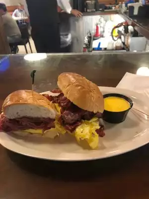 I read about Cole's in a couple of guidebooks, so we stopped in for an early lunch on a Sunday. The atmosphere and ambiance was very interesting (in a good way). We didn't make it to the speakeasy. I ordered the regular prime rib dip, and it really was one of the best ones I've ever had. The meat was lean and tender (not all fatty like I've had at other places) and there was quite a bit of it. The fries were standard and overpriced, and the sandwich was filling enough that I didn't eat many anyway. My fiance ordered the breakfast one, which was good but a pretty typical breakfast sandwich. We'd eat there again when in the area. We didn't order drinks, but the bar looked to be pretty well-stocked. I like whiskey, and they had a pretty good selection that I'd delve into if we make it back. Ordering is a little weird. Someone handed us menus when we sat down, then we later found out we had to order at the bar. They brought the food to us, but I had to go to the bar to get our water refilled and ask for condiments and more coffee.