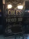 Cole's has a great friendly atmosphere. The sandwiches were great and if hot mustard is your thing Cole's has got a winner! The garlic fries were very tasty. I tried the Bourbon Pecan Pie and it was delicious.